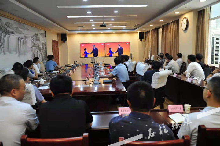 孙开武、姚庆江、陈爱军、谭新生、向东、李智、王琼英、王剑、谭雪峰等全体在家市管领导在县委二会议室集中收看了大会直播。