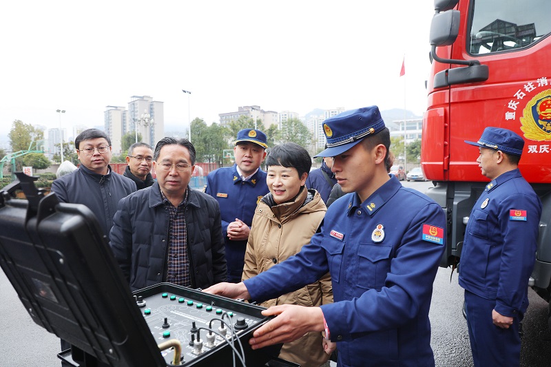 1月29日,石柱县县长郭小萍一行深入县消防救援大队,向长期奋战在灭火救援和火灾防控一线的全体指战员表示慰问,并致以新春的祝福。
